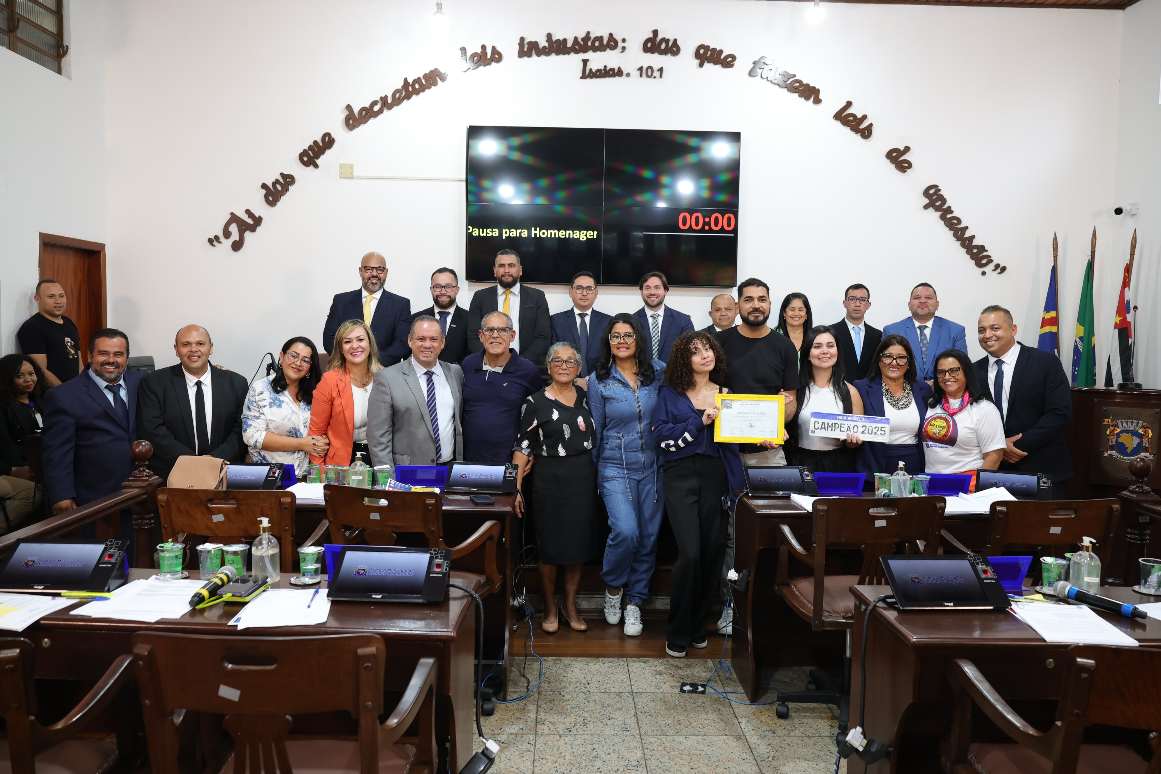 Durante a sessão, foram apresentadas Moções de Aplausos e Apoio a importantes personalidades e causas que têm se destacado em diversas áreas, como o professor André Zappa, em reconhecimento ao excelente trabalho à frente do Projeto Arte e Ginga na Escola; o bailarino Erick de Marco Xavier, pela conquista do 2º lugar com o conjunto de jazz Filhos da Terra, na competição mundial Valentina Koslova International Ballet Competition (VKIBC); o cantor e compositor José Paulo das Neves Júnior (Jopa Neves), pelo prêmio de Campeão Maio Amarelo 2025 no Festival da Natura &Co; os conselheiros tutelares do município pela importantíssima atuação com relação à proteção, defesa e garantia dos direitos das crianças e adolescentes; e também o professor Carlos Eduardo Moreira, a professora Etyene Lisandra Medeiros e, representando as alunas, Isabella Vitória da Silva Freitas, pela participação no Festival de Taboão Fest Dance e Dançart Festival.