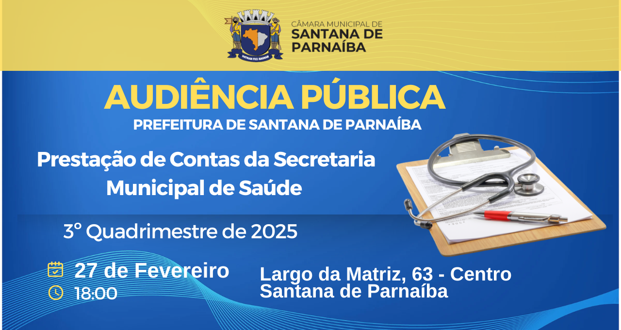 - 18:00 - Audiência Pública – Prestação de Contas da Secretaria Municipal de Saúde - 3° Quadrimestre de 2025