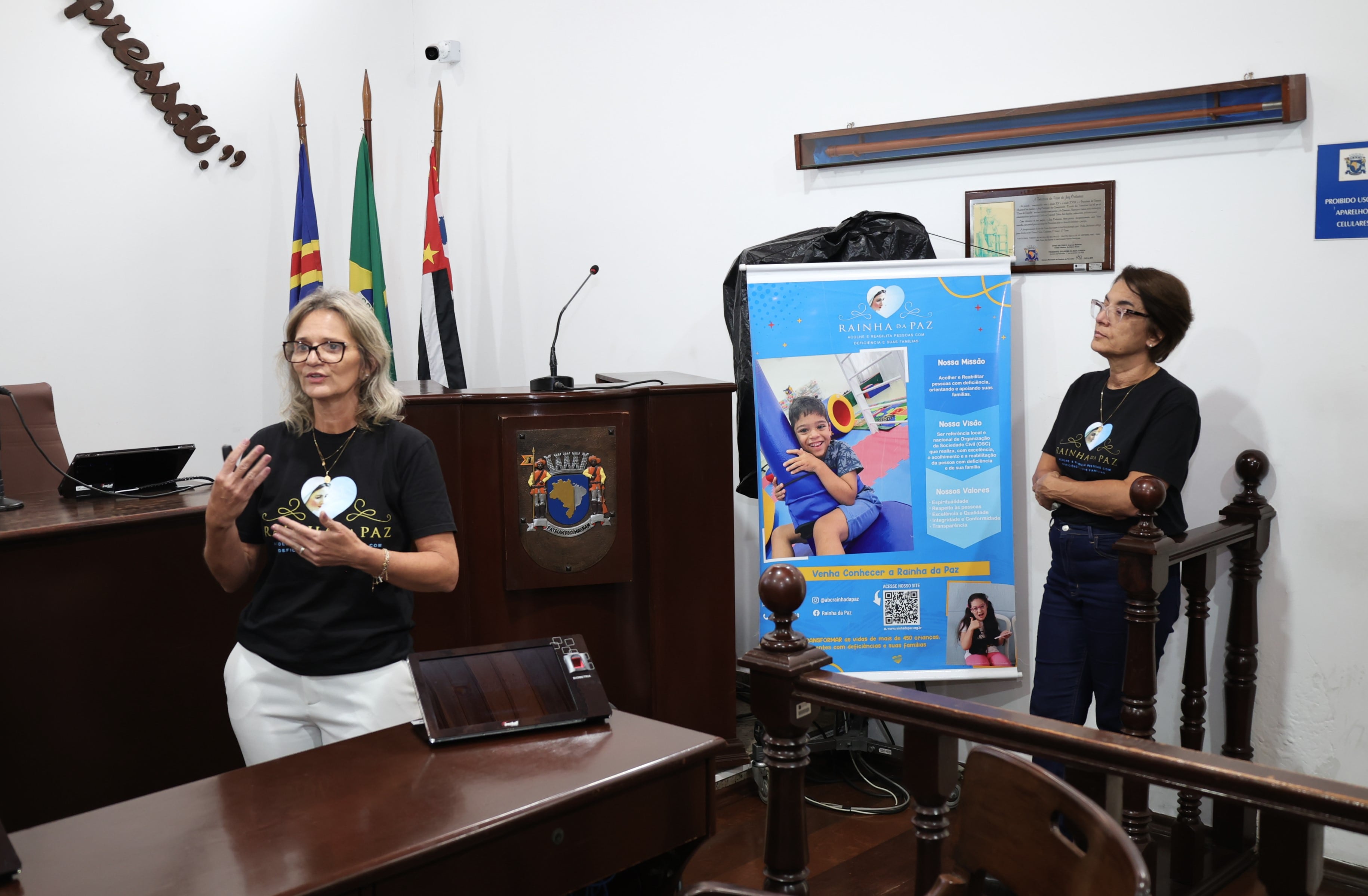 Nesta quinta-feira (20/03), a Câmara Municipal por meio da Escola do Parlamento recebeu a Sra. Luzia Helena da Silva, Diretora Executiva da Associação Beneficente Comunidade de Amor Rainha da Paz, para a palestra "Transformando Vidas com a Rainha da Paz", realizada no plenário da Câmara (Largo da Matriz, 63).